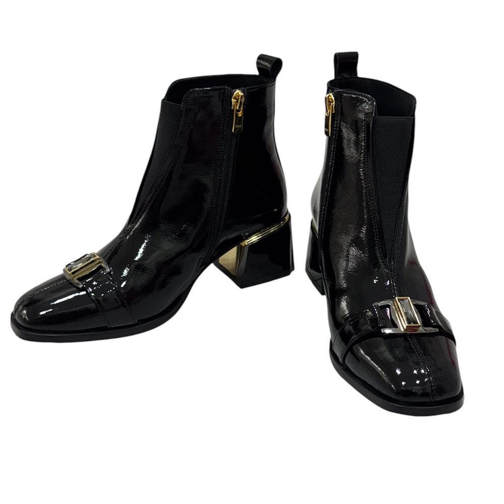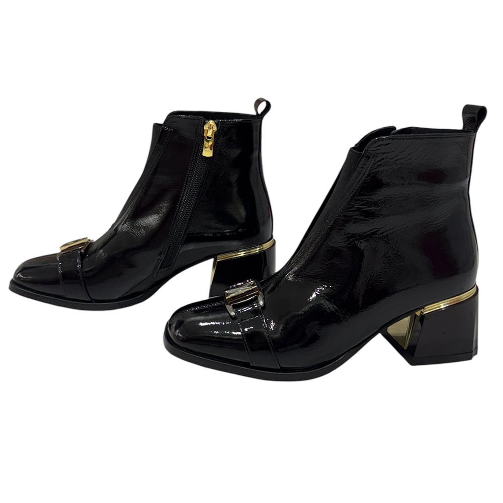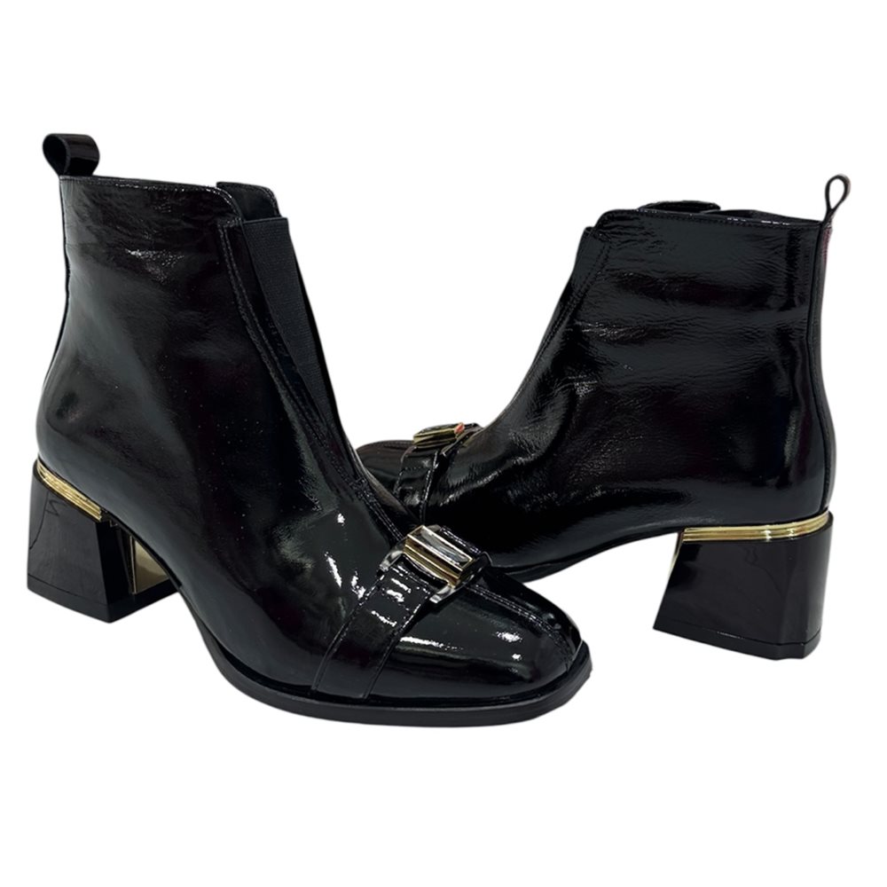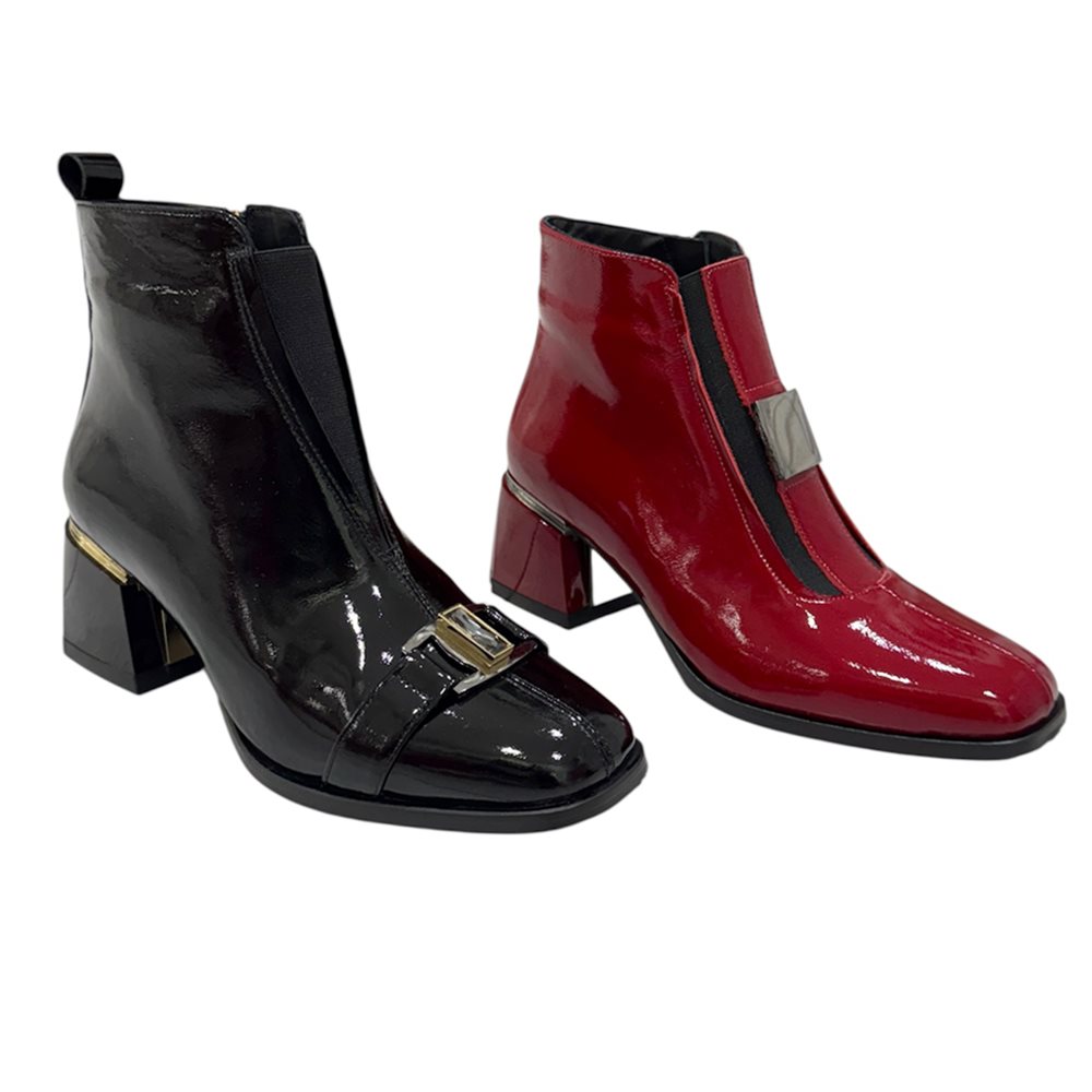 Divatos bőr kocka sarkú bokacsizma. Anyaga: eredeti bőr Származási hely: Lengyelország Szín: fekete,meggypiros. Talp vastagság: 0,5 cm Sarok magasság: 5,5 cm Szárhossz saroktól mérve: 11,5 cm Méret: 36- 23 cm 37- 23,5 cm 38- 24 cm 39- 25 cm 40-25,5 cm