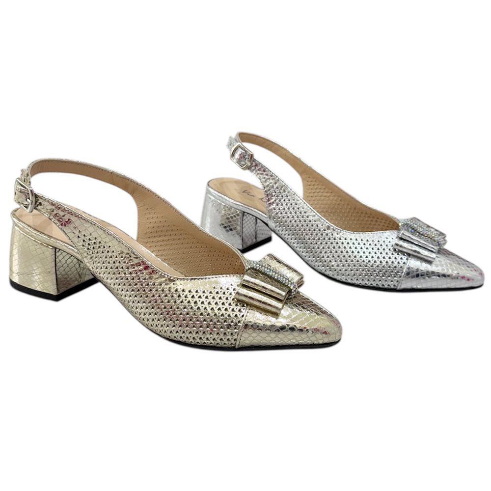 Elegáns kocka sarkú bőr szandál. Származási hely: EU Anyaga: bőr Szín: ezüst,arany. Sarok: 5,3 cm Méretek: 36- 23 cm 37- 23,5 cm 38- 24 cm 39- 24,5 cm 40- 25 cm