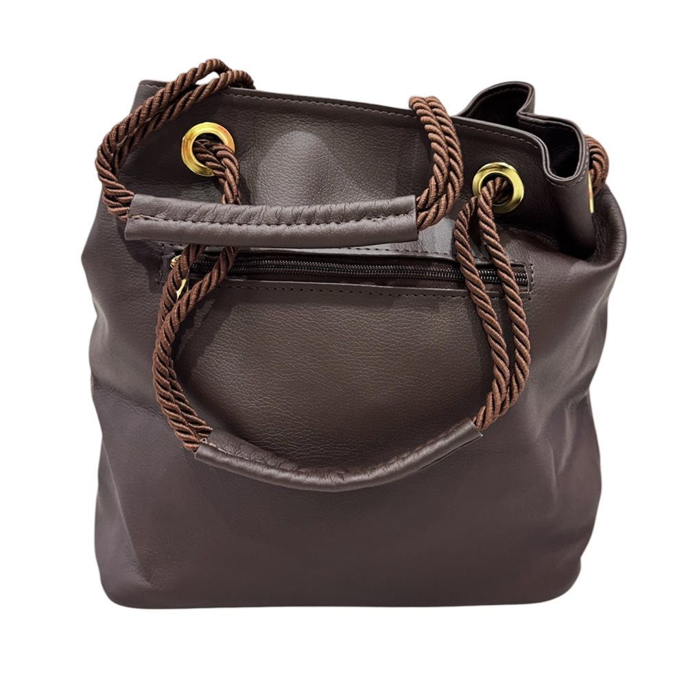 Divatos kézitáska,egy rekeszes,plusz hosszú pánt. Anyaga: rostbőr Származási hely: EU Szín: barna. Méret: Szé 28 x Ma 27,5 x Mé 15 cm