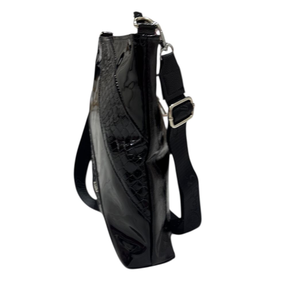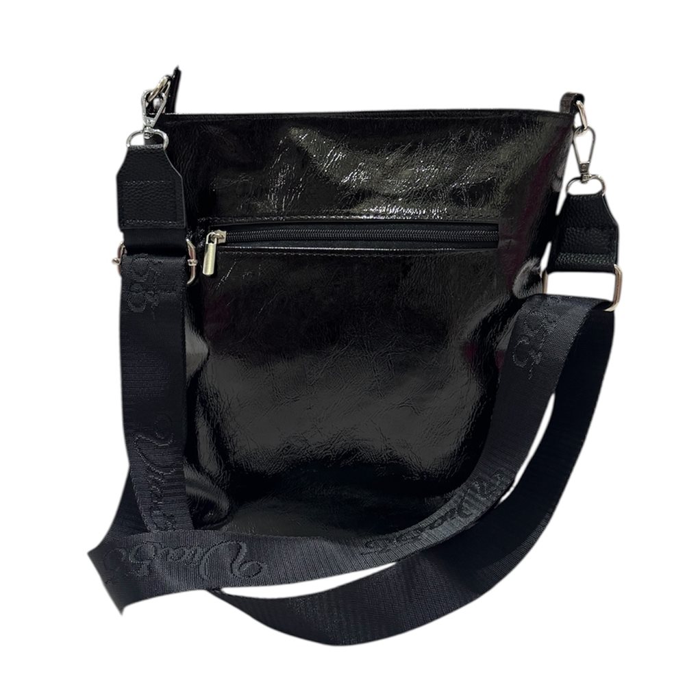 Divatos oldaltáska.Egy rekeszes,hátul cipzáras zseb. Anyaga: rostbőr Származási hely: EU Szín: fekete. Méret: Szé 27,5 x Ma 28,5 x Mé 7 cm