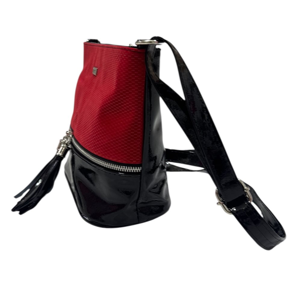 Divatos oldaltáska.Egy rekeszes,hátul cipzáras zseb,elöl dísz cipzár van. Anyaga: rostbőr Származási hely: EU Szín: fekete-piros. Méret: Szé 27,5 x Ma 28,5 x Mé 7 cm