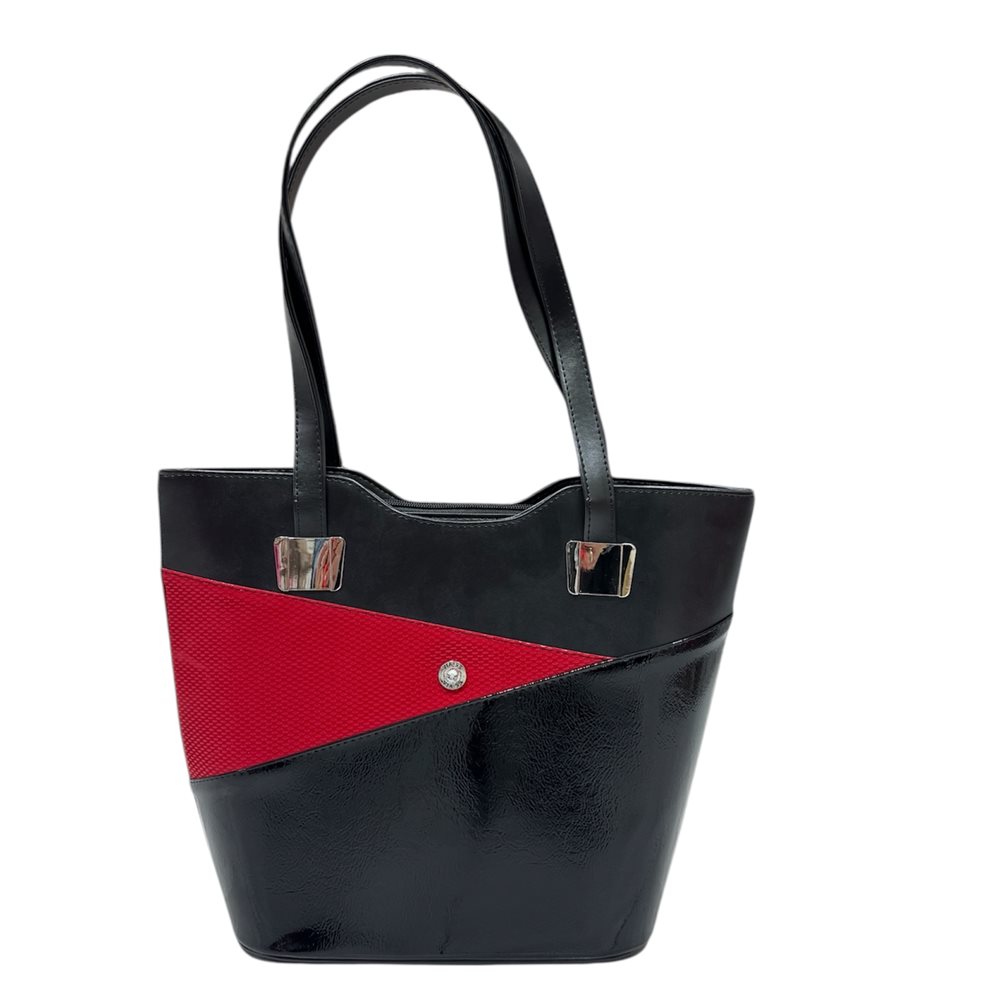 Divatos válltáska. Egy rekeszes. Anyaga: rostbőr Származási hely: EU Szín: fekete-piros Méret: Szé 38 x Ma 30 x Mé 12,5 cm