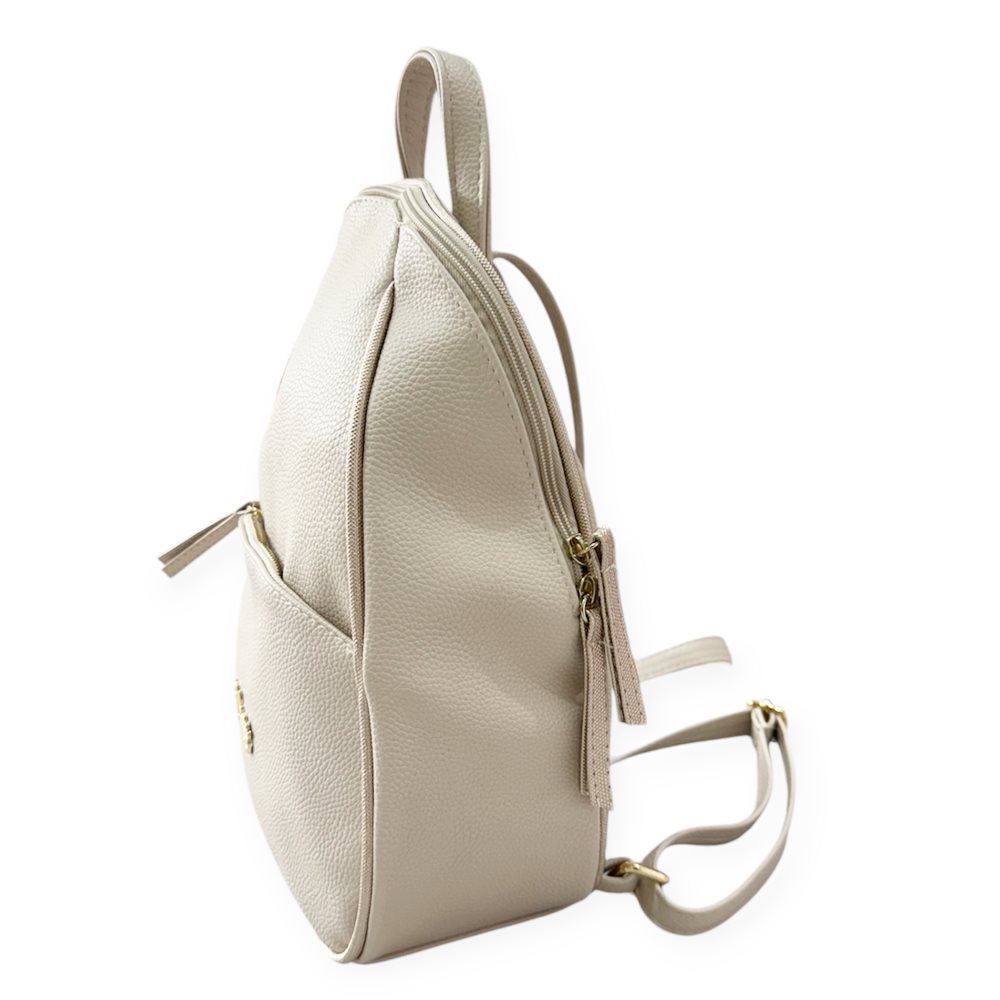 Elegáns,divatos hátitáska. Két rekeszes. Anyaga: rostbőr Származási hely: Lengyelország Szín: krém. Méret: Szé 26 x Ma 32,5 x  Mé 12 cm